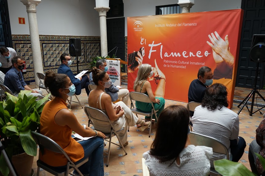 El acto de presentación se ha celebrado en la sede del Instituto Andaluz del Flamenco con la participación de la consejera de Cultura y Patrimonio Histórico, Patricia del Pozo, el delegado del Gobierno de la Junta en Sevilla, Ricardo Sánchez, el alcalde de Mairena del Alcor, Juanma López, y el presidente de la Casa del Arte Flamenco, Manuel Jiménez. También han asistido la directora de la Agencia Andaluza de Instituciones Culturales, Mar Sánchez, miembros de la corporación municipal y el elenco de artistas.